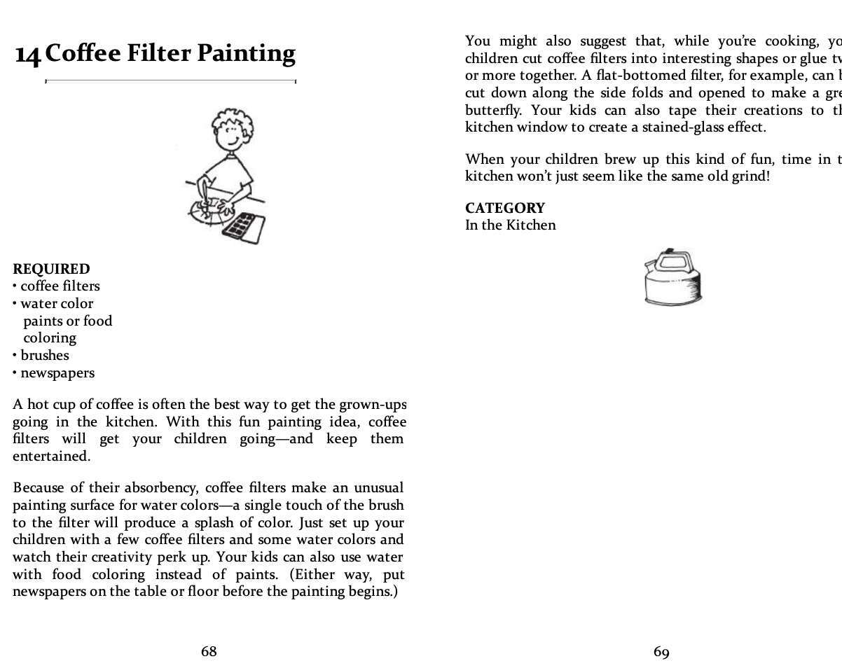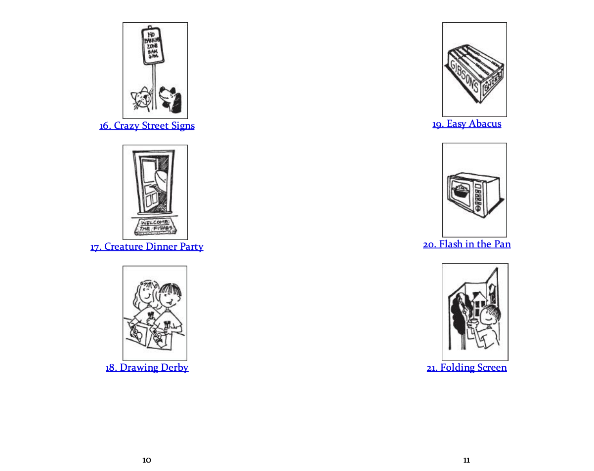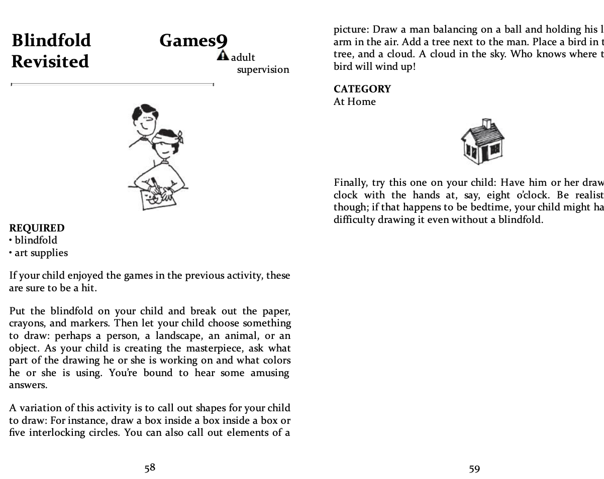 Gồm đúng 101 trò chơi và hoạt động offline mà bạn có thể làm cùng con. Danh sách từ đơn giản như “Tic-Tac-Tongs”, “Kitchen Bowling” đến “Creature Dinner Party” và cả “Make-Before-You-Go Swiss Army Notebook”. Mỗi hoạt động đều là sự kết hợp giữa sáng tạo, vui vẻ và tính ứng dụng cao – từ nghệ thuật, thủ công, tư duy logic đến vận động cơ thể. Có trò chỉ cần giấy bút, có trò chỉ cần trí tưởng tượng – và có những trò cần thêm một chút kiên nhẫn… của người lớn.