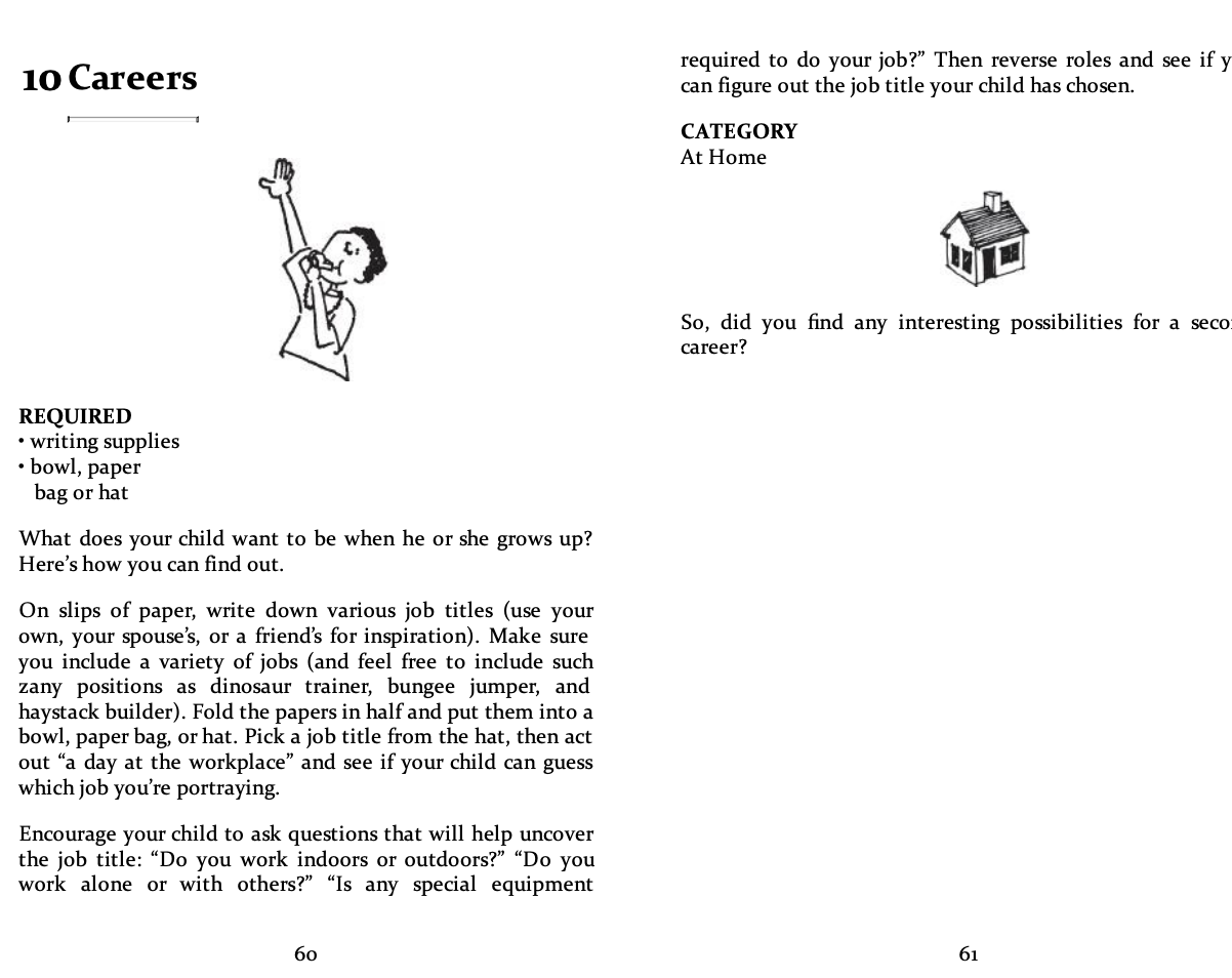 Chẳng cần “học” gì cả. Mở trang bất kỳ, đọc vài dòng hướng dẫn là bạn và con có thể bắt đầu chơi luôn. Mỗi trò chỉ mất từ vài phút đến khoảng 15-20 phút – vừa đủ để giết thời gian buồn chán, nhưng không quá dài để bị tụt mood.