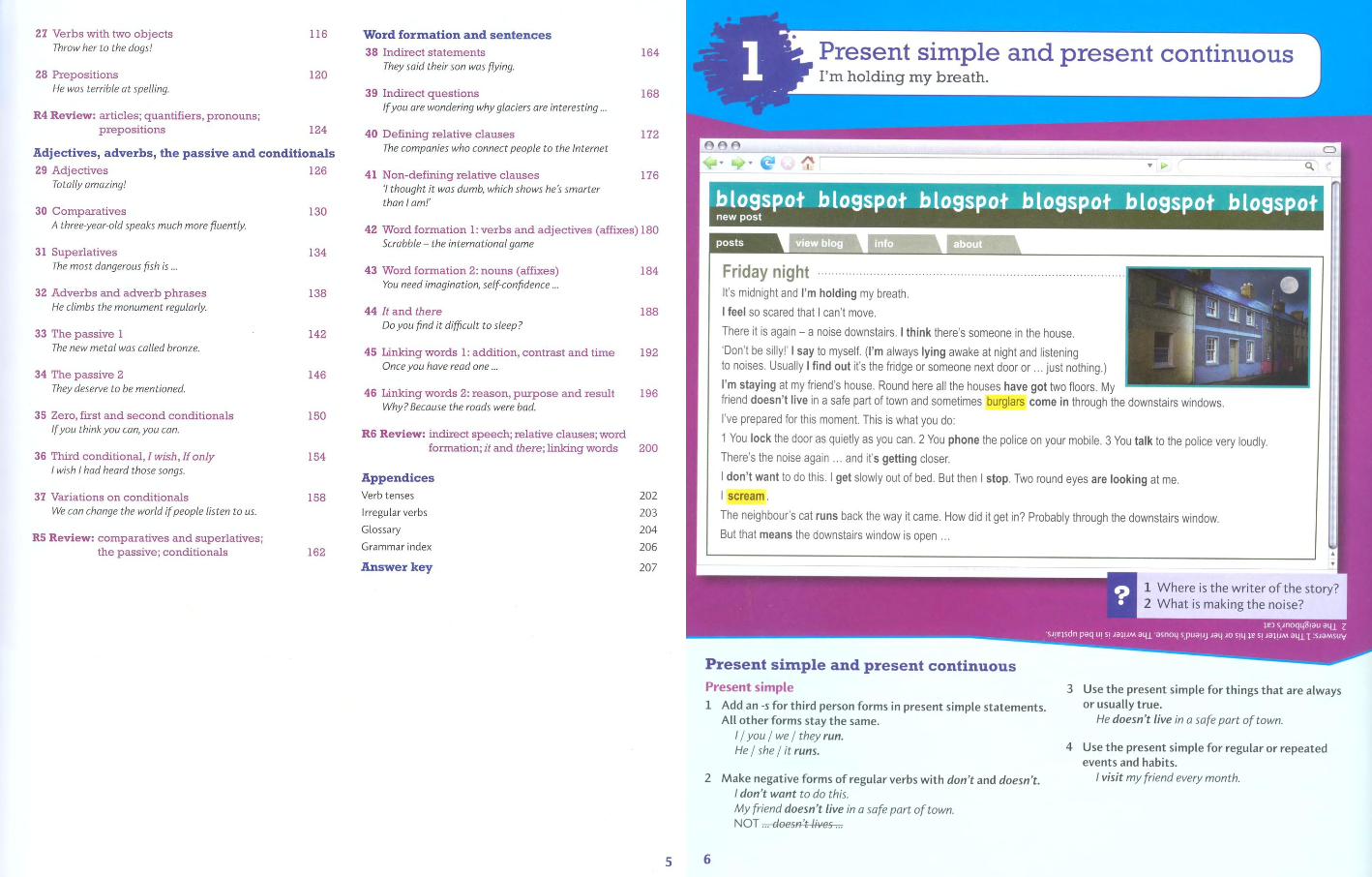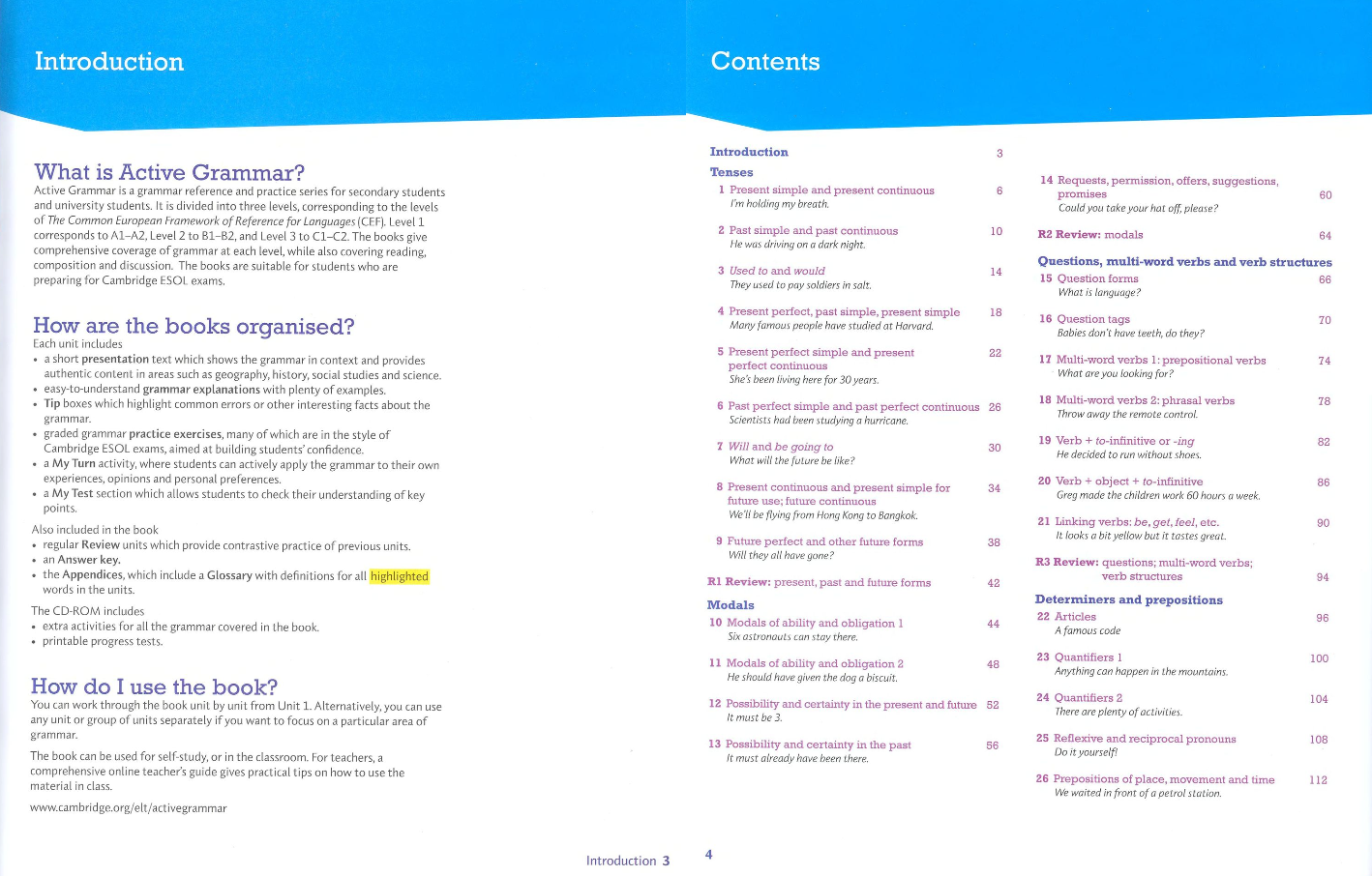 Ok, sách này nó chia cực bài bản, rõ ràng, không vòng vo như mấy giáo trình “rối não”. Gồm 45 chủ đề chính – từ thì hiện tại, quá khứ, tương lai các thể loại, đến mệnh đề, câu điều kiện, động từ khuyết thiếu, câu bị động, cấu trúc nâng cao, phrasal verbs, linking words, bài tập dạng đề thi Cambridge, nói chung là đủ để bạn cứng cáp phần grammar luôn.