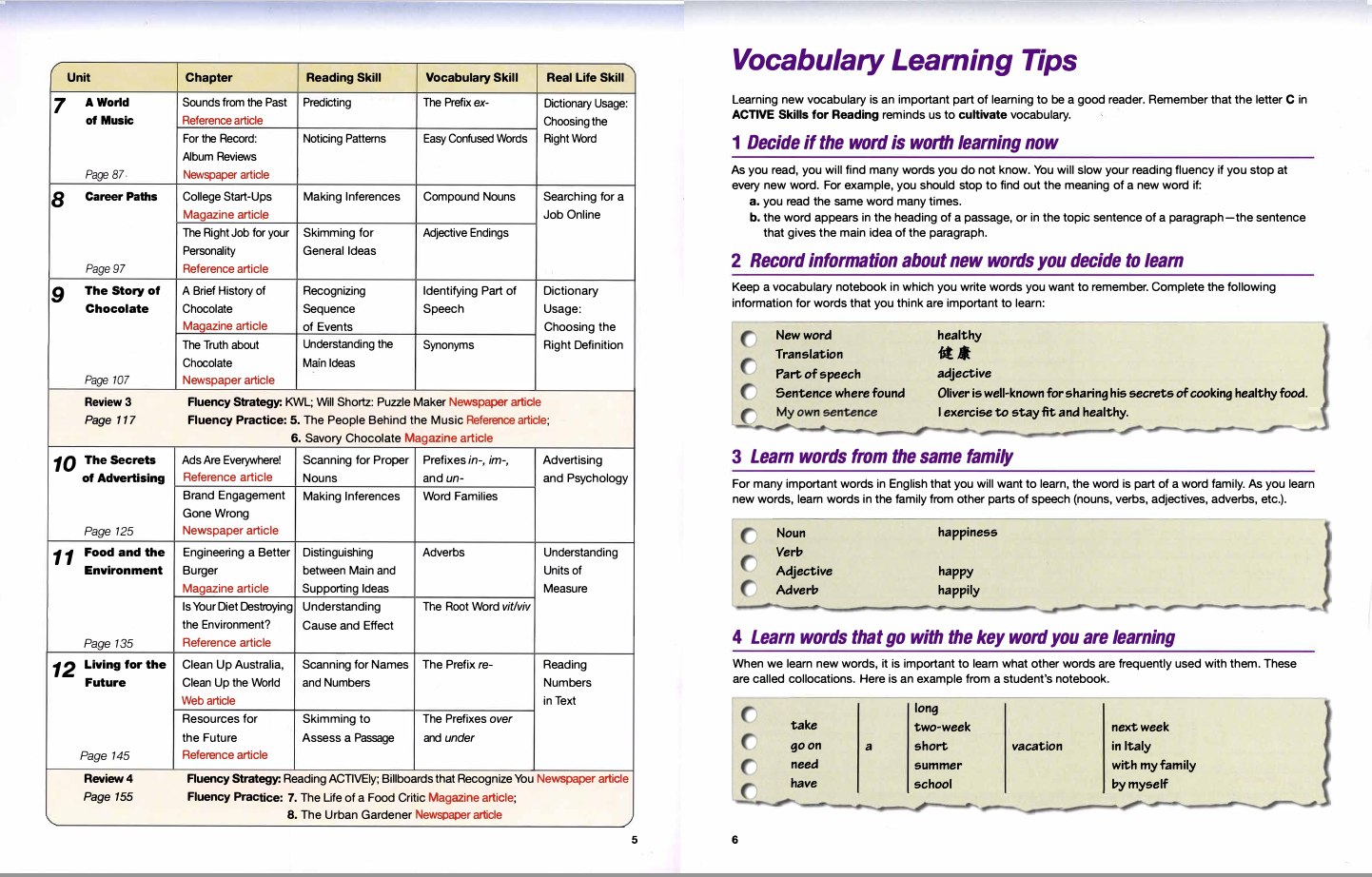 Gồm 12 chương, bao phủ toàn những chủ đề đời thường nhưng không nhạt – như quảng cáo, âm nhạc, du lịch, thể thao, công nghệ, môi trường, v.v. Mỗi chương có một bài đọc chính kèm hàng tá hoạt động: đoán ý, học từ mới, luyện phản xạ, hiểu sâu nghĩa bài đọc, và còn cả bài tập tình huống kiểu “Real Life Skill” nữa. Quan trọng là mỗi unit đều gói trọn triết lý ACTIVE: Activate prior knowledge – Cultivate vocabulary – Think deeply – Increase fluency – Verify strategy – Evaluate progress. Nói vậy nghe căng, chứ học rồi mới thấy… mê thật sự.